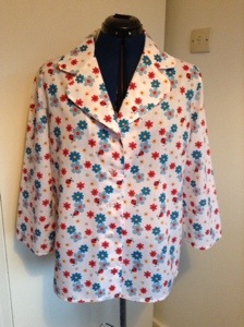 And fabric….. Ok, I did pay not a lot of money for it on the market. Or was it the iron? I did need to rush out yesterday, after something of a small of burning coming from the iron, and purchase a new one. On a couple of occasions it seems to have shrunk the fabric when steamed. Putting the buttons on has overcome the problems on the front, but I ended up completely scrapping one sleeve and starting again.