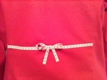 I may yet add more embellishments, as there are still vast swathes of red with the potential to be covered. However, I will need to be careful. The bow was stitched on by hand before adding the lining. But now it’s lined, adding embellishments will be from the outside only and will therefore have to be by hand and neat. I’ll see. It’s perfectly wearable as it is.