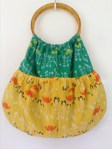 The inside is lined with the same patch work cotton, with a pocket in yellow on the green side, and the lower section is wadded to give shape. Love it!