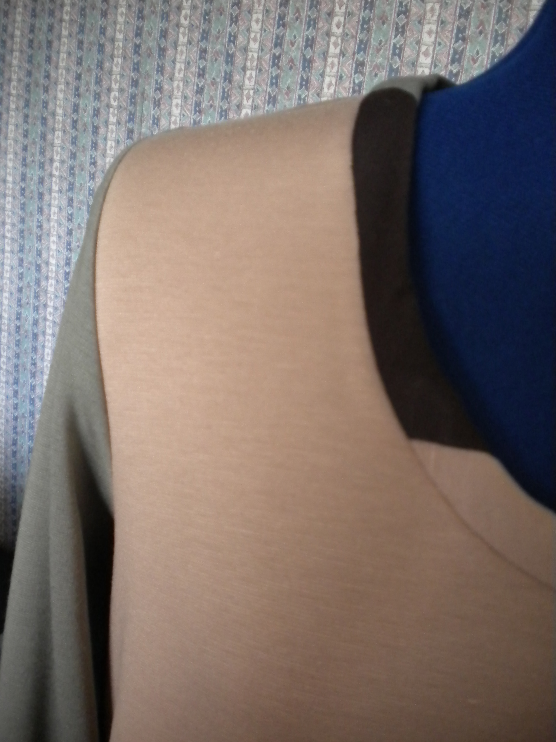 The challenges were not really in the construction, although stitching in the ditch around the neckline took a bit of concentration to do it accurately. The main challenges were to find three similar weighted fabrics that would work together, and then, the biggest challenge, what thread to use on each part of each seam? This was particularly difficult around the neckline which uses all three fabrics. I plumped to match the salmon colour in the end (with a sort of ‘matches anything light’ shade of beige), but had a bit of re-work to do when I caught the brown and had to unpick. Many wouldn’t have bothered!