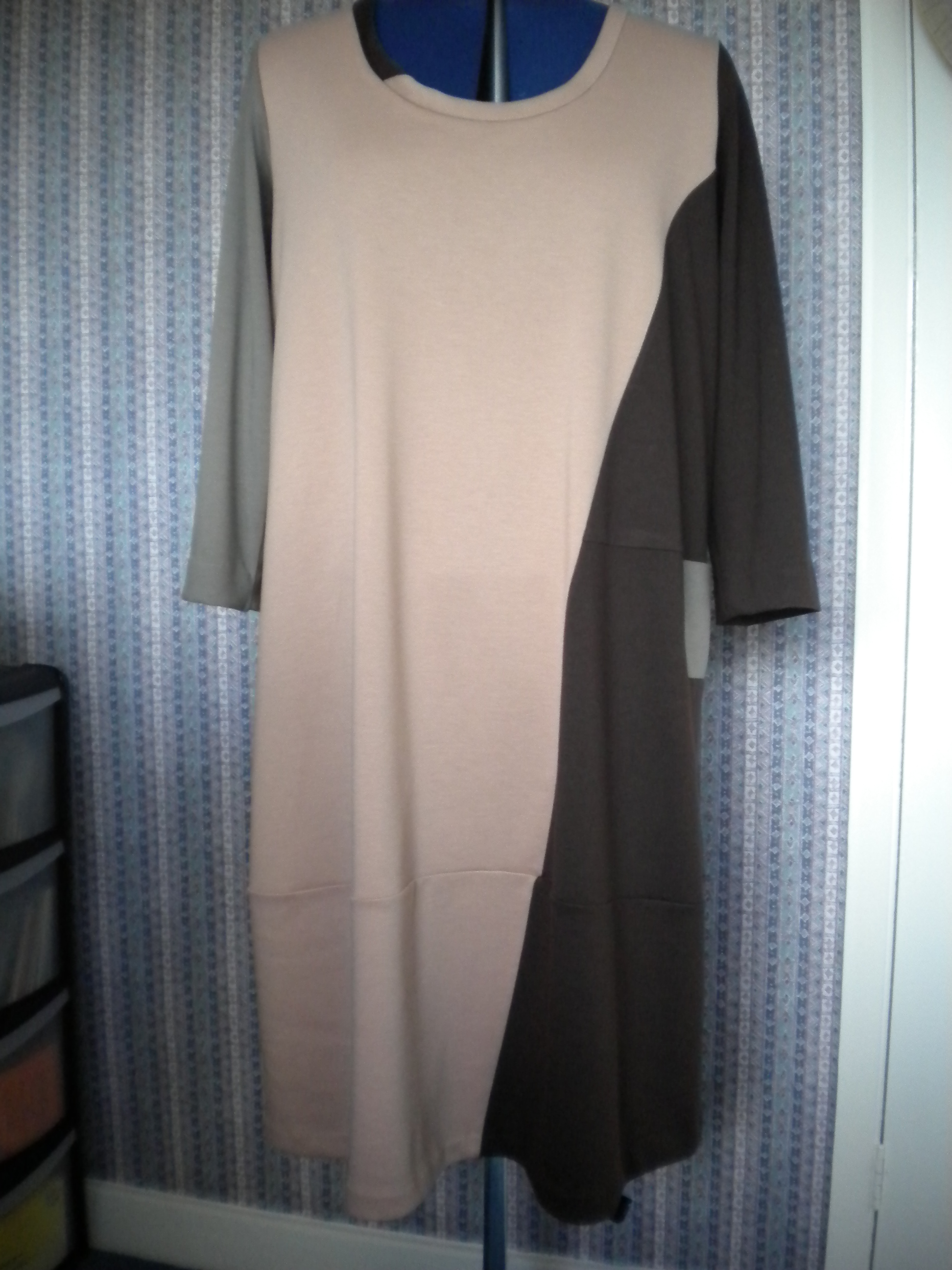 Marcy Tilton colour blocked dress. I am getting a surprisingly large amount of wear out of this. It wears and washes easily (although it runs ….), and every week I think that I will be putting it away ready for the Autumn, and then I wear it again.