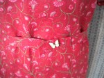 I have several dresses that are ‘shift’ in style, and although they hide any bulges, they are not flattering. I think I have made belts for all of them. I bought some ribbon for a belt when I bought the fabric. That is option 1, but I also made a fabric variation, including a little butterfly button that I bought at Stratford Craft Market the other week.