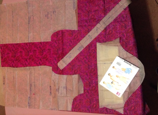It is by far the oldest fabric I have used in recent years, having bought it in Mumbai before I replaced my sewing machine and started sewing again. It was a present for my Mum. I think it was either bought in 2001 or 2003, and I’m pleased to say that it has survived two house moves, albeit, remaining unused. The ‘trouble’ is that it is sari fabric, and there is a gradation of the background fabric colour across the width of the fabric, and I don’t think that Mum knew how to cope with that, despite being an accomplished sewer herself.