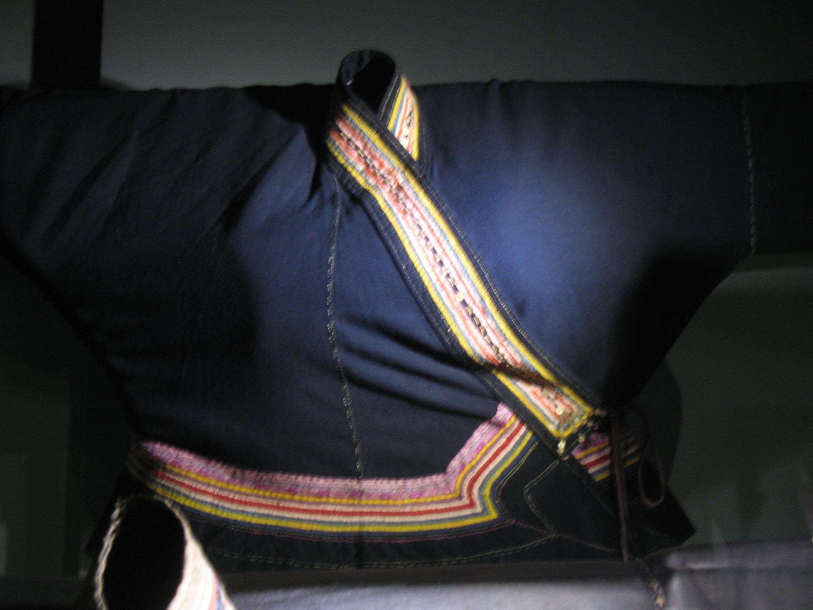 I have had several innovative ideas about this jacket over the past few weeks, including an idea to give it a Burmese / Thai theme, based on the attached rather poor picture, which was taken at a museum in Chiang Mai and shows a tribal jacket.