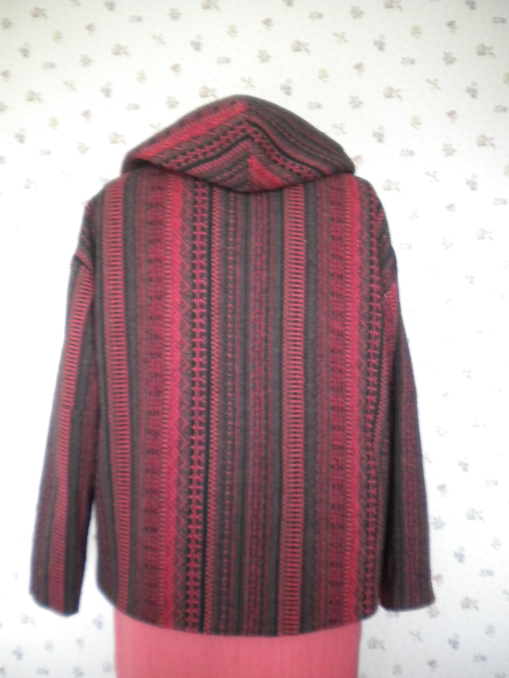 Quite a while ago I read an article, I think in Sew Today, which started something about having bought some blanket fabric on a Thai market and turned it into a coat. I didn’t set out to do the same, but that’s what I have done. I would class this as slow sewing, and it took almost 3 solid days to make, with a delay of a similar length whilst I contemplated how to fasten it.