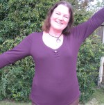 The orange jacket is from fabric purchased at the NEC show 3-4 years back, and the waterfall cardi was one of the first things that I made when I bought my machine, 6 years ago. It doesn’t get worn a lot, as I don’t have ‘orange days’ all that often! These pictures were taken the next day, so feature the shirt dress.