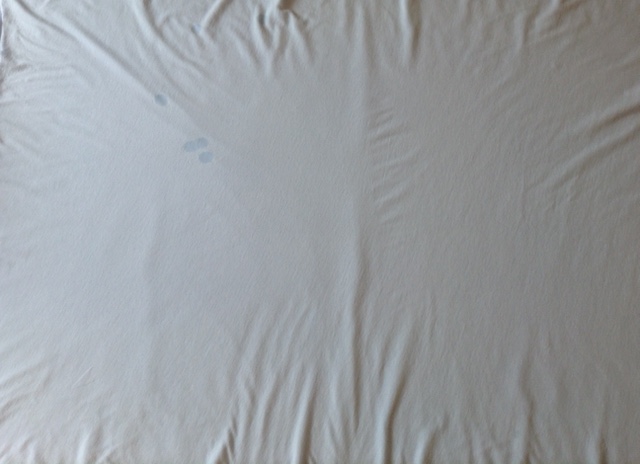 Firstly, the colour ran, but at least I learnt the lesson early on and there was no damage done. The picture above was after it had been on the ironing board, and I tweeted that I did luckily have all day to get it straight. Its a pity there is no way I can iron on the cutting out table, but I did try to steam a bit. There was also one part of the fabric that refused to be sewn. It was round the neck edge of the t-shirt. An attempt to stay stitch just made it less stable (and I needed more steam) and at the same point I had an almighty machine jam when I was finishing with the twin needle. I was amazed that there was no hole after I had pulled the needle plate out and cut the threads.