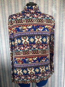 I bought the fabric from Girl Charlee back in June or July, in the sale. I don’t generally keep much of a fabric stash, other than left over bits, so I was well aware that this was in a cupboard waiting for an idea. Usually I am pattern lead; not fabric lead. As you can imagine, pattern matching was potentially a challenge, so I wanted a pattern with a large expanse of fabric that didn’t need matching, and yet something new. Although I have lots of long sleeved t-shirt patterns, none of them have a turtleneck. I could probably have adapted a pattern; buying a new one was rather lazy of me.