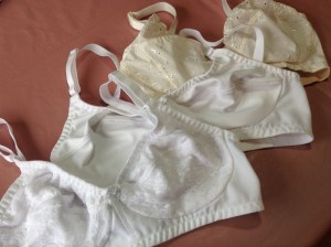 Finally I added little white bows to the centre front of both white bras. I had them in stock already. So slightly prettier…..