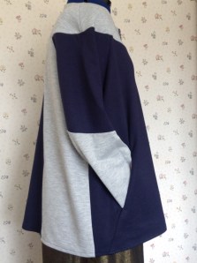 As I have said before, I tend to be pattern driven rather than fabric driven, and I’d had my eye on this one for a while. I found myself with some leftover fabric from making my third hoodie, and decided that this patten would lend itself quite well to colour blocking, and that with only an extra metre of fabric, I could get a jacket out of the it. But colour blocking is a design feature. The hack came in two forms: I used Ponte Roma – a knit, rather than woven fabric, and I did not line it. I invented a facing for the front to give it a tidy finish.