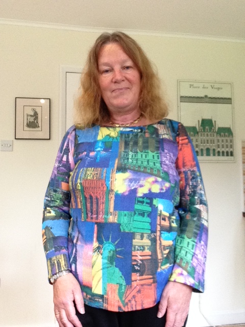 The butterfies came from FabWorks Mill Shop found whilst browsing all things online at the start of lockdown, and the colourful buildings are from Barry’s, bought shortly after it re-opened. I already have some colourful buildings in both a Lark jumper and a Marcy Tilton jacket. They have both been worn quite a lot, and as this fabric is a slightly different range of colours, i decided that a new jumper would compliment the existing range! (Excuses, excuses, i know, but guess what i am wearing right now…… the new jumper.) So here they are together: