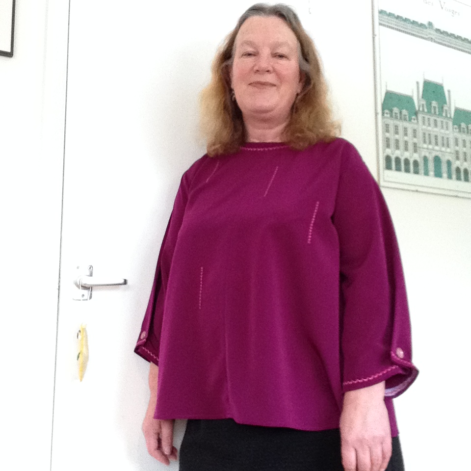 This is not how i started out! Luckily (in a way) there are very few patterns where i don’t have to shorten the sleeves between 5 – 6 cm. I am not aware that i have particularly short arms. I have considered this matter a few times, as it is such a common requirement. My arms are not short. But at least it gives me some ‘space’ to play with when decorating sleeves goes wrong! I just cut off 8cm worth of ‘damage’ and started again, in the above order. As with the neckline, the decorative stitching is over interfacing (some of which shows from some angles, but i’ll live with that). The only things i had to amend were the button positions, which i gauged simply by trying on the top and pinning in the right place (and then measuring to level up). The buttons are vintage, bought at a sewing fair quite a while ago. The ‘magic’ button box keeps delivering.