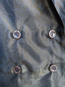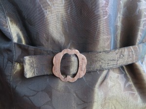 The ‘magic button box’ delivered again, although i did buy these online during lockdown 1.0, partly to give me a choice for the garment i was sewing, partly to justify the postage, and partly to add to my stock. So that was a good decision, as they work quite well on the waist coat! However, i don’t recall sewing anything double breasted before. It takes a bit of time to get it right. Not only does the vertical alignment need to be correct, but there is horizontal alignment to consider as well. I positioned the second row of buttons with the aid of a tape measure and the ironing board. The vintage buckle was bought at a sewing show ages ago; maybe Sewing Bee Live. I bought a few, and it is the first one that i have used. It slips easily when worn. I may need to add a small piece of velcro to keep it in place, or even a small stitch.