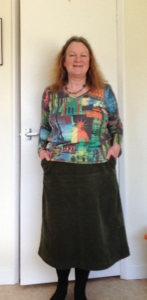 Items i have never worn include my dressing gown made from an old duvet cover, and the TMA tie neck blouse. The dressing gown was made for a specific holiday, which didn’t happen, but ought to be the right weight for May. It’s right behind me now; hanging on my study door ever since it was unpacked from the suitcase! The TMA tie neck blouse was made for a challenge to make something from a book that you had not made before. I quite like the blouse, but since i don’t do work meetings any more, and there have been very few ‘party type’ events in the past year, there has been no call to wear it, ….. so far! It goes quite well with that bright pink scuba skirt, doesn’t it?