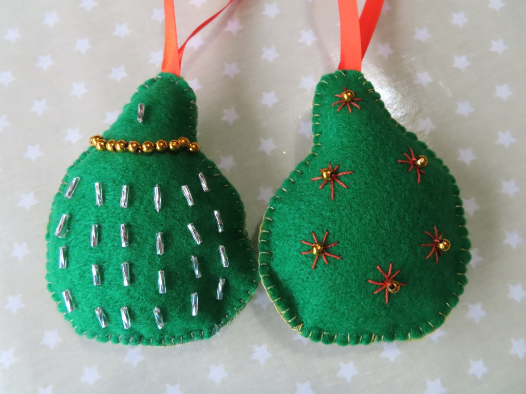 I don’t generally have a Christmas tree, so these have been gifted to carefully chosen recipients. The new owners must a) be able to appreciate the work that has gone into the decorations, and b) have a fairly big tree!