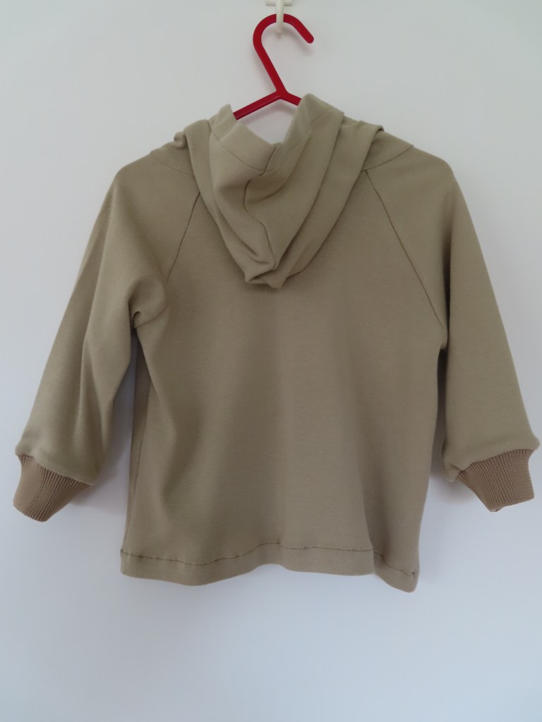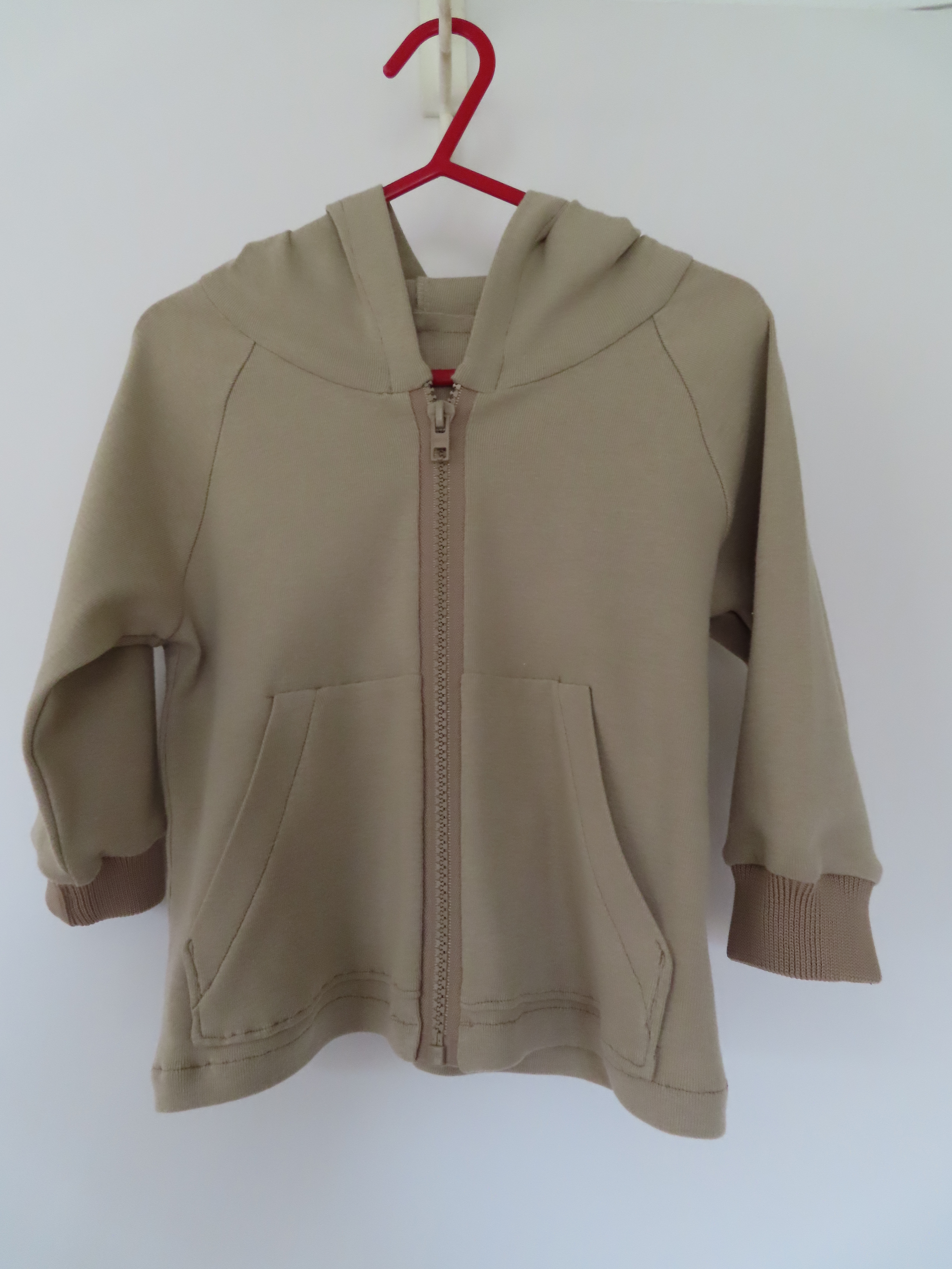 I bought Kwik Sew 3150 when it was on offer and made a hoodie from it. (The pattern is no longer marketed by SewDirect, and may be difficult to source now – sorry) The pattern starts at T1, so is probably too big for a 5 month old, but that’s fine. He will grow into it. Both garments are made from left over fabric from my Hebden t-shirt. The trousers aren’t finished partly because i have run out of 3/4″ elastic, despite once thinking that i had a lifetime’s supply, and also , it would be better to add the elastic nearer the time that he is going to be able to wear them. The cuffs are from tubular cuffing bought online. It’s not what i was expecting, but i have cut it up and made it work! There are 4 more years of use in this pattern, and the original ABC hoodie will work for a boy as well.